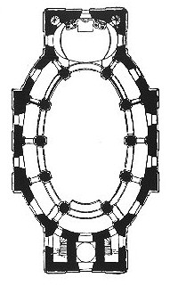 Das quergestellte Oval der Apsis mit dem monumentalen Hochaltar liegt im Osten des Kirchenschiffs direkt gegenüber dem Hauptportal.