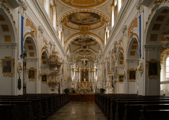 Baugeschichte Ehemalige Abteikirche der Benediktiner; heute Pfarrkirche St. Peter und Paul Oberelchingen. Das Kloster wurde Anfang des 12. Jahrhunderts gegründet. Graf Albert, genannt von Ravenstein, und seine Frau Bertha gelten als Gründer. Der erste Bau lag im Tal nahe der Donau. Erst später wurde die Klosteranlage auf dem Berg errichtet. Die romanische Basilika wurde 1142 geweiht. Noch im 12. Jahrhundert zogen Benediktiner in Oberelchingen ein. Die dreischiffige, romanische Pfeilerbasilika blieb trotz Bränden und baulichen Änderungen in ihrem Kern bis heute erhalten. Fast ihr gesamtes Mauerwerk wurde übernommen. Nach Bränden im 15. Jahrhundert wurde die Kirche mit gotischen Maßwerkfenstern und einem achteckigen Vierungsturm ergänzt. Der Dreißigjährige Krieg brachte massive Zerstörungen. Im Zuge der Reparatur (Mitte 17. Jahrhundert) erhielt die Kirche Kreuzgratgewölbe, Fenster in barocker Ovalform und eine Zwiebelhaube für den Vierungsturm. Etwa 100 Jahre später wurden unter Verwendung von Rokokoformen die Westfassade renoviert und kleine halbrunde Seitenkapellen angebaut. Nach dem Brand von 1773 wurde der Stiftbaumeister von Wettenhausen, Josef Dossenberger d.J., mit dem Wiederaufbau der Kirche beauftragt. In dieser Zeit vollzog sich Stilwandel vom Rokoko zum Klassizismus: Während der Mönchschor noch im Stil des Rokoko gestaltet wurde, prägte der Frühklassizismus die Gestaltung des Kirchenschiffes. 1802 erfolgte die Aufhebung des Klosters. Die Kirche dient seitdem als Pfarrkirche. | Die Baugeschichte der Klosterkirche Oberelchingen