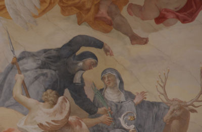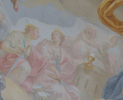 Nr. 15: Diesen (obengenannten) folgen über den Sternen Margaretha, Catharina und Barbara, die man die heiligen Nothelferinnen nennt