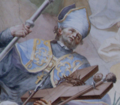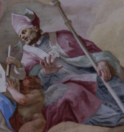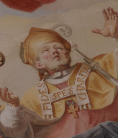 (* 924 † 31. Oktober 994) war geistlicher Lehrer, Missionar und ab 972 Bischof von Regensburg. Er war in seinem Bistum außerordentlich beliebt, nicht zuletzt wegen seiner großen Menschenfreundlichkeit und Güte, seiner großen Demut und Bescheidenheit. St. Wolfgang im Salzkammergut und der Wolfgangsee sind beide nach ihm benannt: Als er 976 in seinem Eigenkloster Kloster Mondsee Zuflucht suchte, soll er von eigener Hand die - erste kleine - Kirche erbaut haben und wundertätig gewesen sein. Attribute: Bischofsstab, Kirchenmodell, Beil |