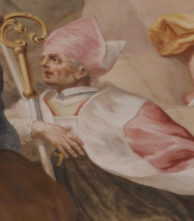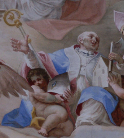 Nr. 38: Wer war denn der Erbauer der Kirche in Öttingen? Ich sag es euch: Bayerns Apostel Rupertus, der später Bischof von Salzburg wurde. Auf diesen folgt Willibald mit dem Rechnungsbuch, das allein die Eichstätter Bischöfe von den übrigen Hirten unterscheidet, denen die Sorge um ihre Herde obliegt. (queis = quibus?) Heiliger Rupert