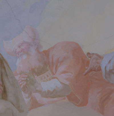 Nr. 50: Betrachte zuerst jenen Gerechten, den frommen Priester Simeon, der im Tempel war, als die jungfräuliche Mutter ihren Sohn brachte, um ihn nun für das Heil der Welt darzubieten. Simeon zeigt sich bekleidet mit dem Mantel des alten Bundes. Er ist sicher deshalb der erste, da er Christus am nächsten ist, auch wenn er der letzte Priester gemäß dem alten Bund war. Simeon