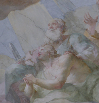 Nr. 52: Dann folgt Abraham, dem der Sohn Isaak sich freiwillig als Opfer hingibt, sein „einziger Sohn, an dem er sein Wohlgefallen hat“. (vgl. Mat. 3,17 /Mark. 1,11 / Luk. 3,22) Abraham Isaak Abraham
