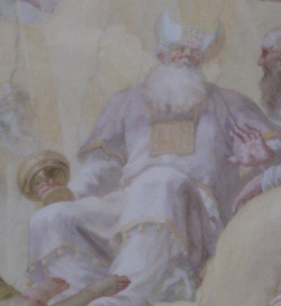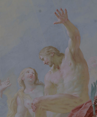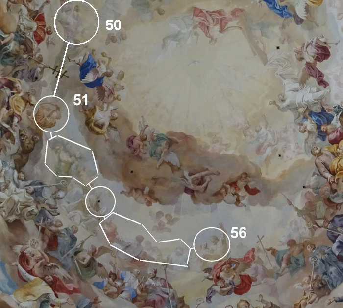Nr. 56: Schließlich, nach einem langen Zug von vielen Vätern des alten Bundes, folgt der Urvater Adam mit der Urmutter Eva, die vom Herrn selbst als „vom Mann genommene“ bezeichnet wurde. Adam und Eva