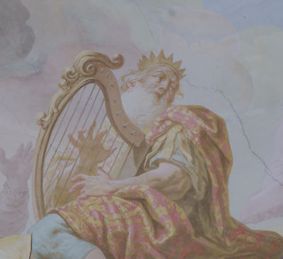 war laut 1. und 2. Buch Samuel, dem 1. Buch der Könige und dem 1. Buch der Chronik des Tanach und des Alten Testaments der Bibel König von Juda und als Nachfolger Sauls auch von Israel. Er soll um 1000 v. Chr. gelebt haben und gilt als Verfasser zahlreicher Psalmen, der Davidpsalmen. Er wird deshalb oft mit der Harfe dargestellt. |