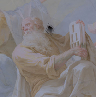 Nach biblischer Überlieferung führte der Prophet Mose als von Gott Beauftragter das Volk der Israeliten auf einer vierzig Jahre währenden Wanderung aus der ägyptischen Sklaverei in das kanaanäische Land. Auf dem Berg Sinai erhält Moses vom Gott des Volkes Israel die zehn Gebote. |